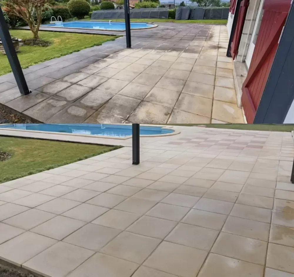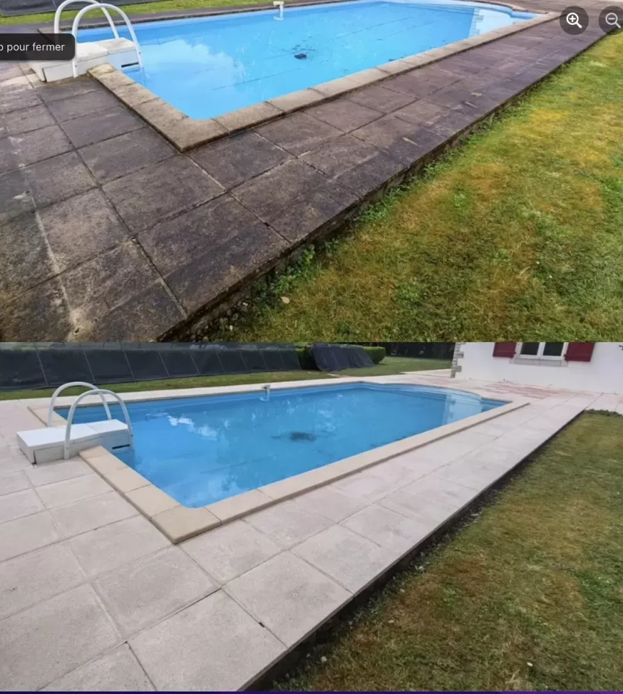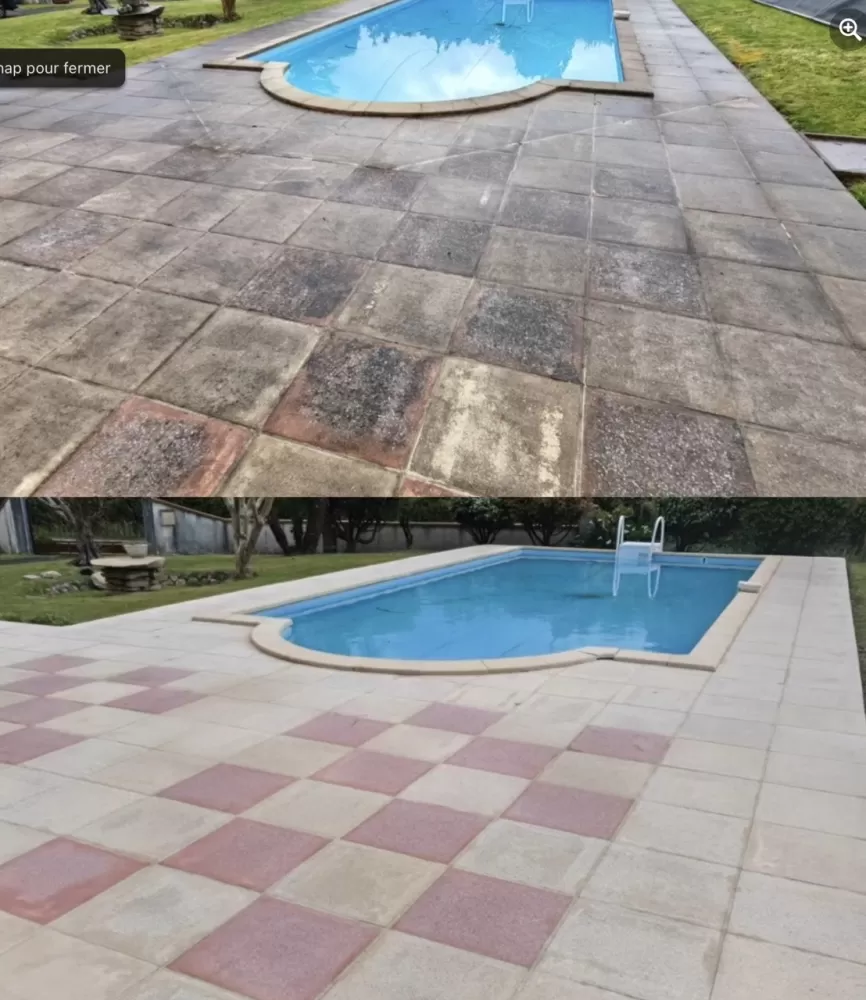 Un tour de piscine martyriser par la javel et la haute pression chaque année.