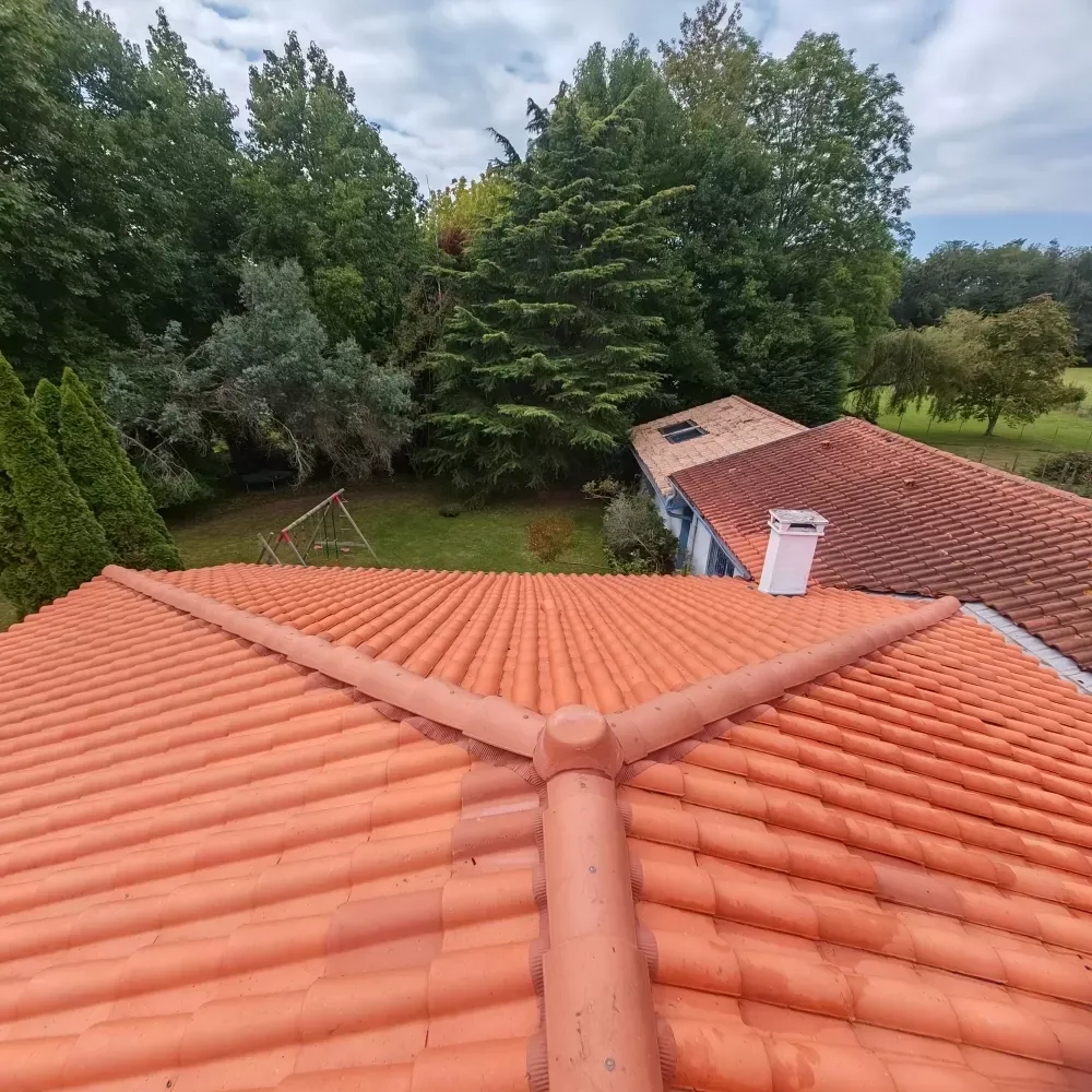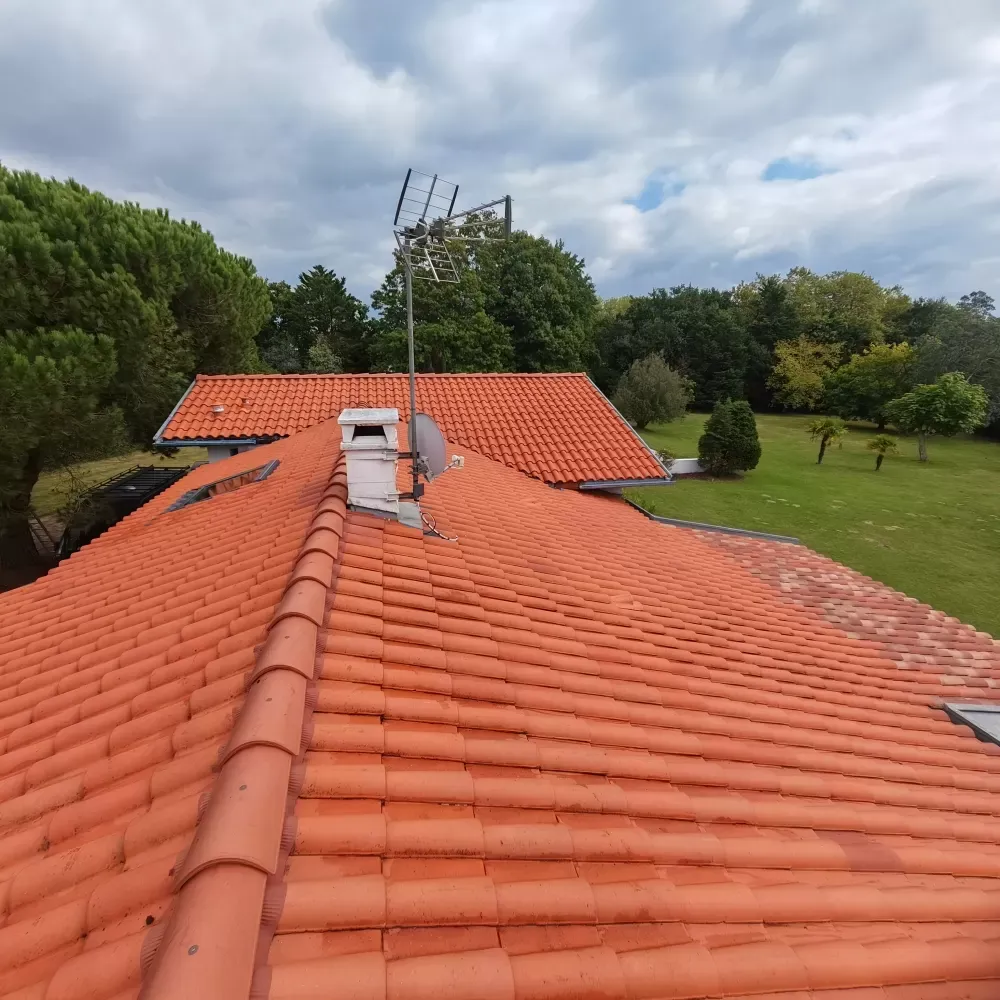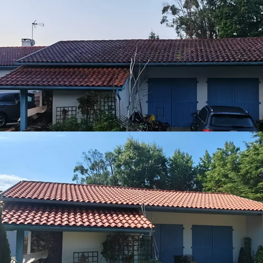 La semaine dernière l'équipe de Green Vapeur a réalisé un nettoyage de toiture à Bidart sur une tuile vieille de 37 ans.