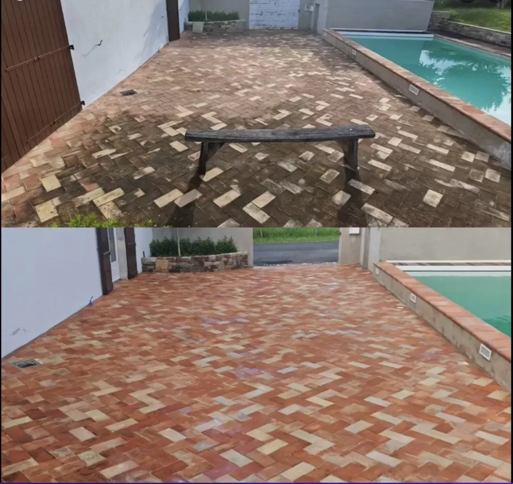 Une terrasse en terre cuite décontaminée en vapeur (140 degrés) et en basse pression (90 bars)
