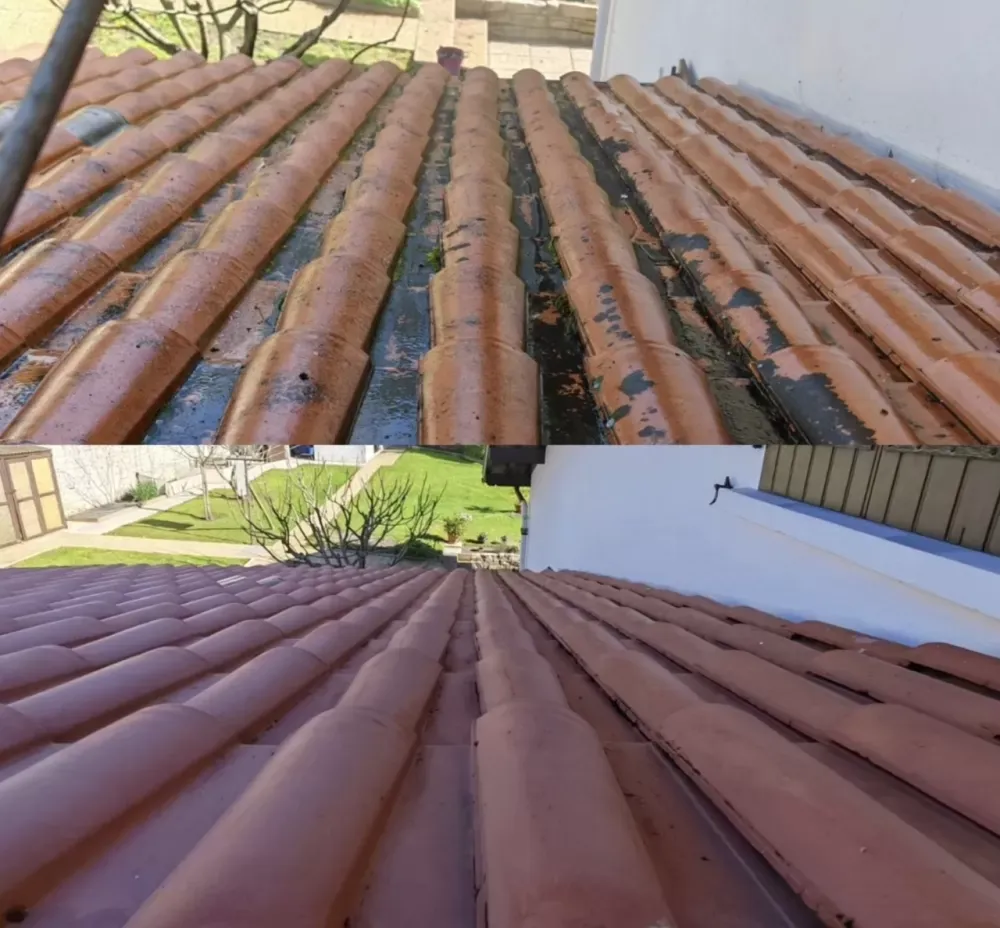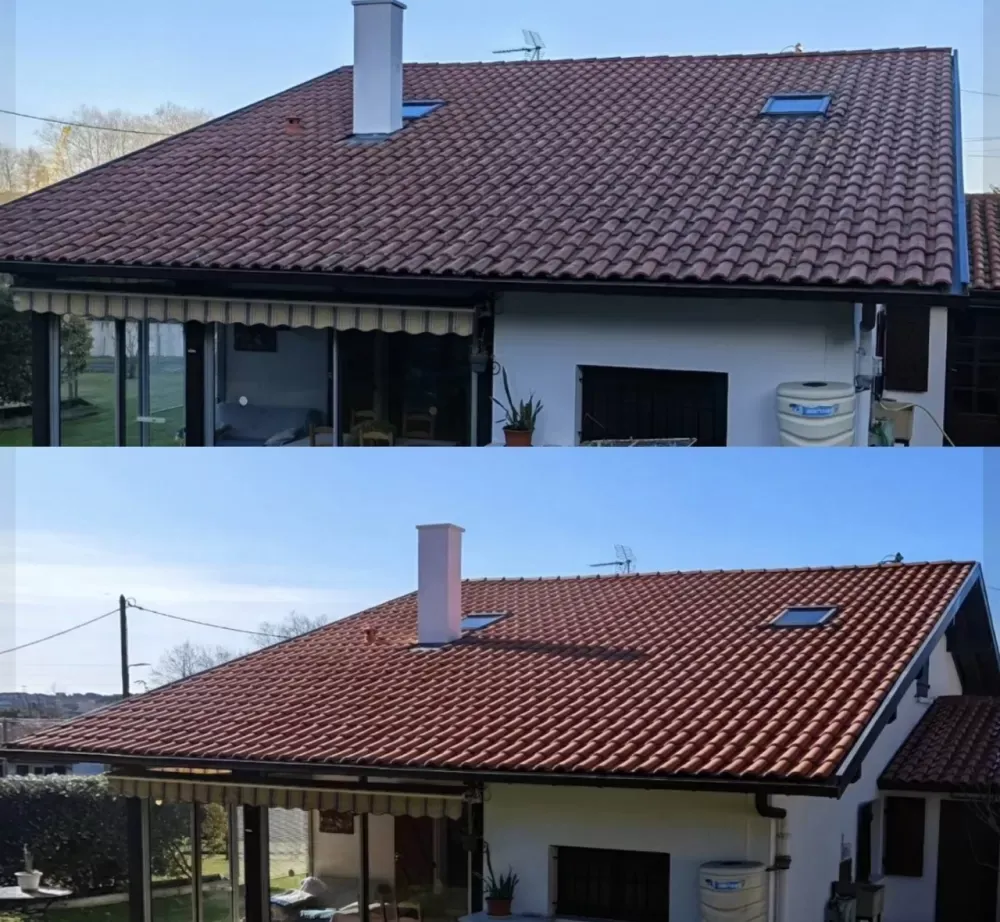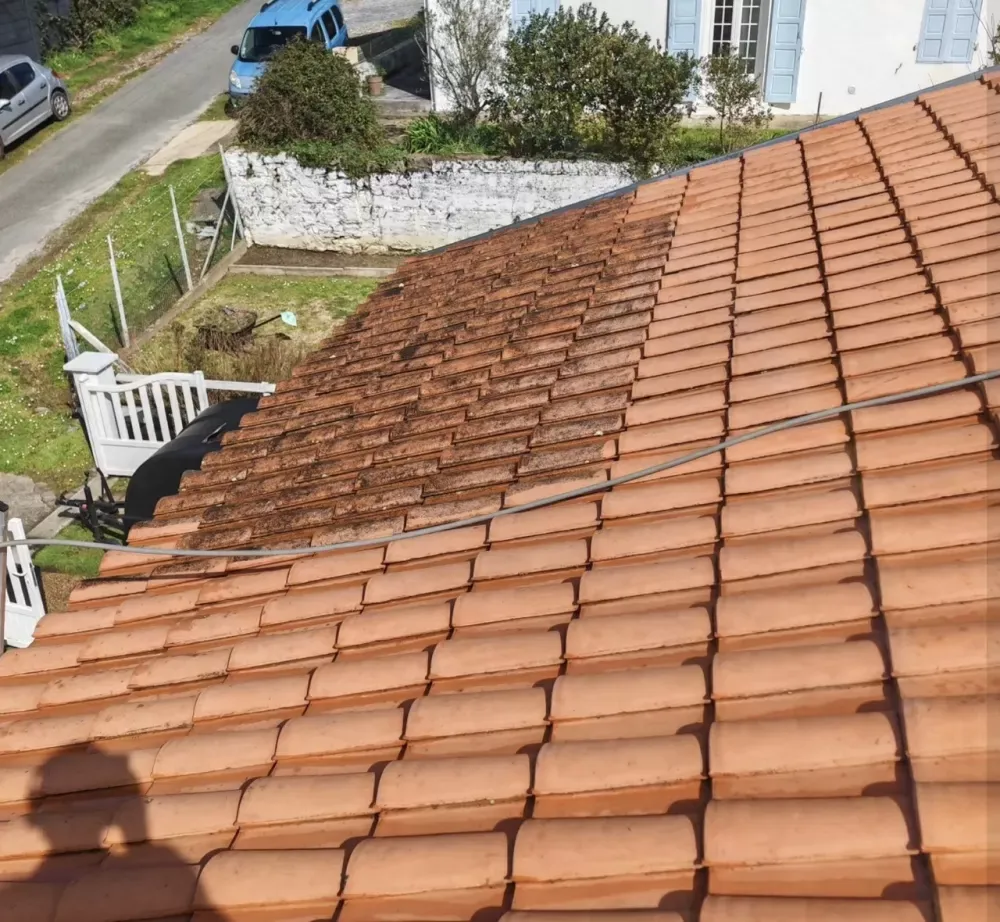 Nettoyage écologique d'une toiture à Tarnos sur une toiture qui n'a jamais été nettoyer avec de la chimie.