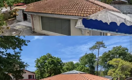 Nettoyage écologique d'une toiture à Tarnos sur une toiture qui n'a jamais été nettoyer avec de la chimie.